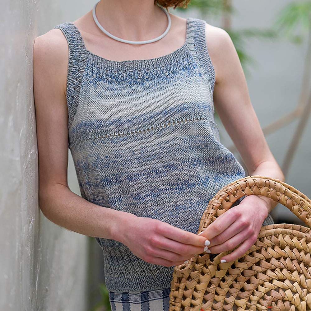 涼しげなグラデーションが美しいキャミソールはメリヤス編みベースで透けることを気にせず着られます。大人に似合う、上品なデザインです。(このレシピはキャミソールのみです。)