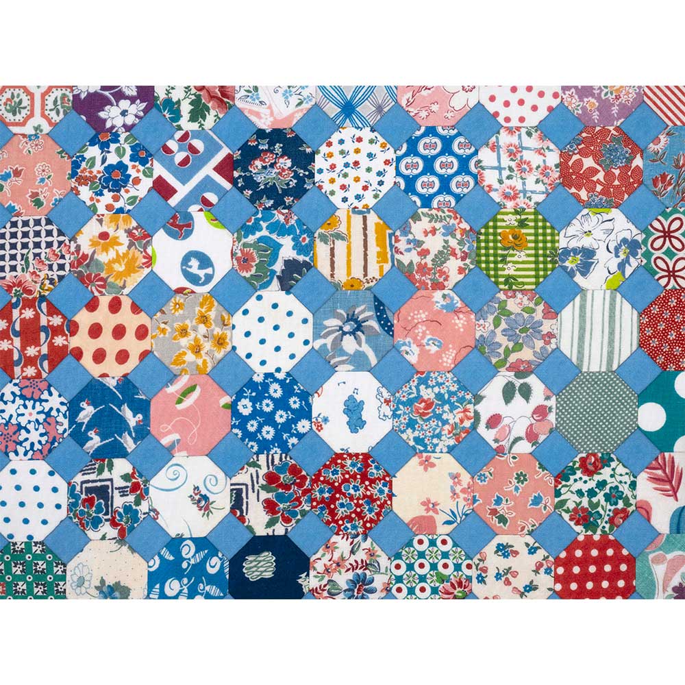 100種類以上のフィードサックをオクタゴンのパターンでつなげた作品を、そのままプリントした布です。オクタゴンは1辺約2.2cm。そのままでも、キルティングだけしても素敵な作品に仕上がります。