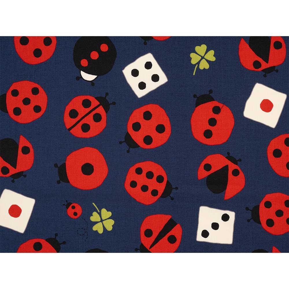 【キャンバス】テントウムシの模様がサイコロになったユニークで可愛らしいデザイン。やや厚手のキャンバス地なのでバッグやインテリアなどに。