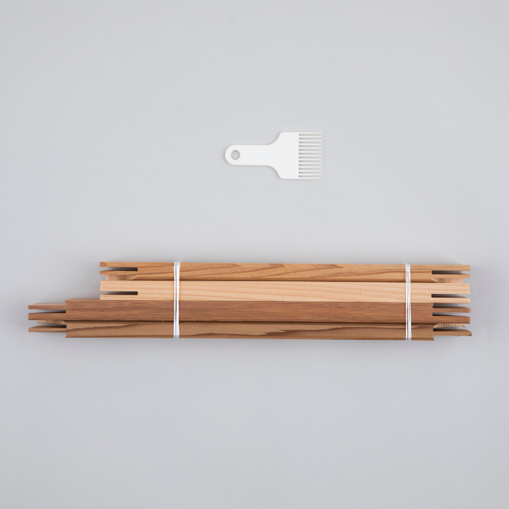 キリム織りに必要な「木枠」と「くし」のセット。木枠は組み立てて使用します。