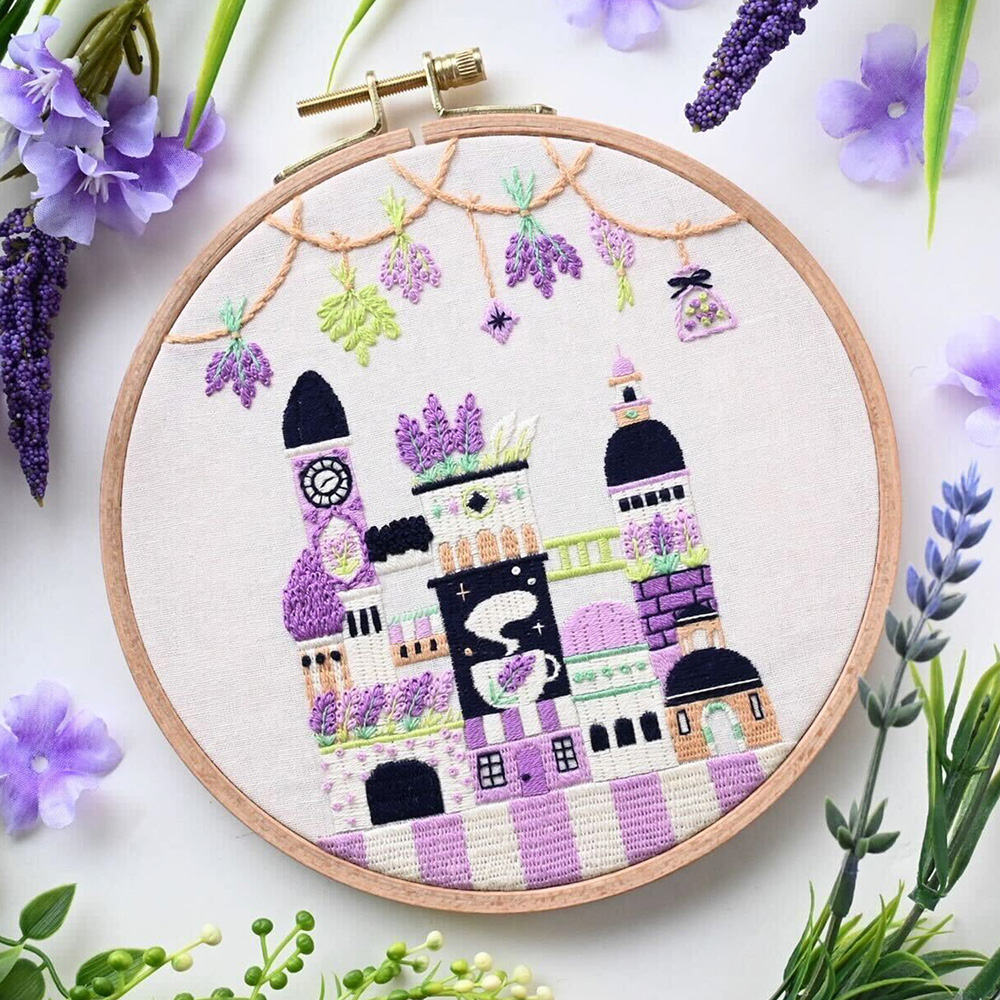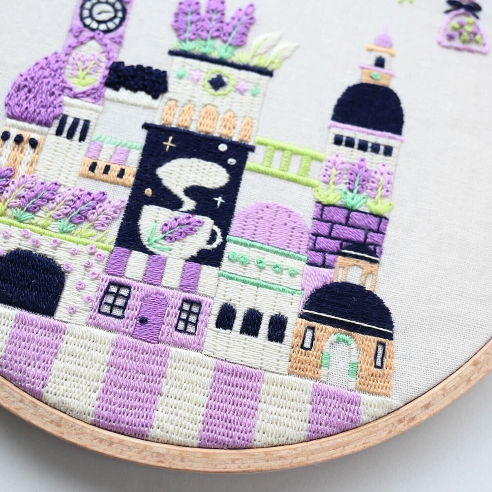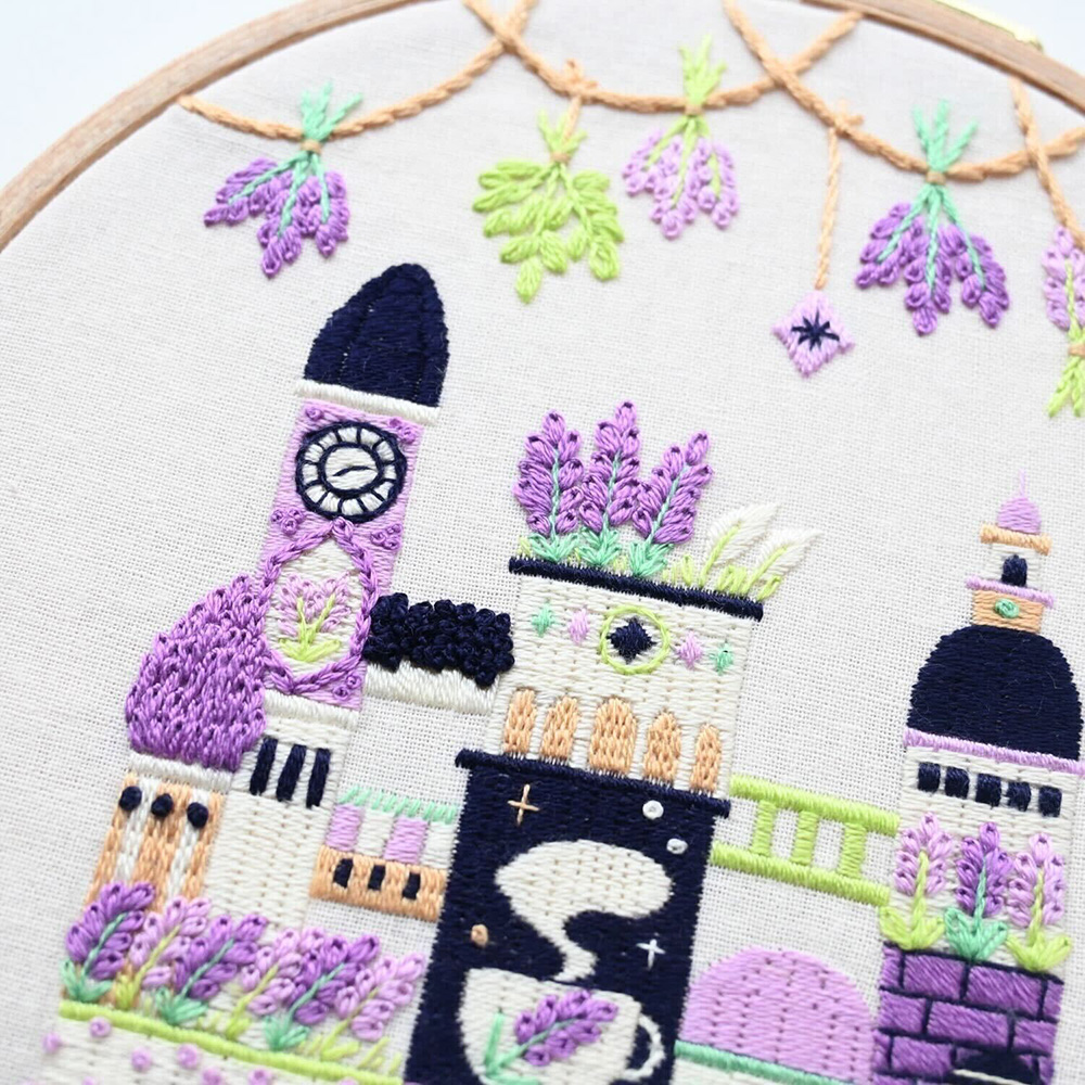 可愛らしいラベンダーが咲き誇る、眺めているだけでも癒される刺しゅう。