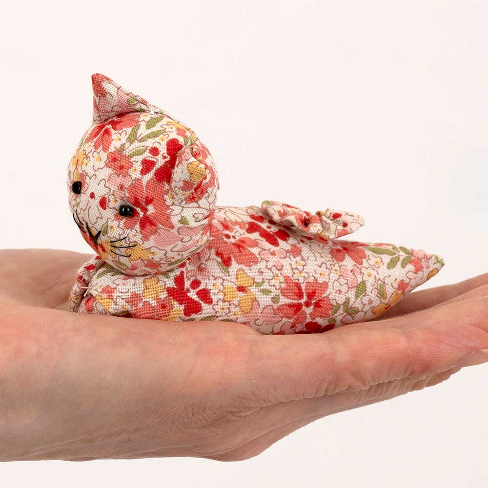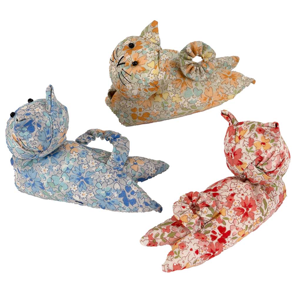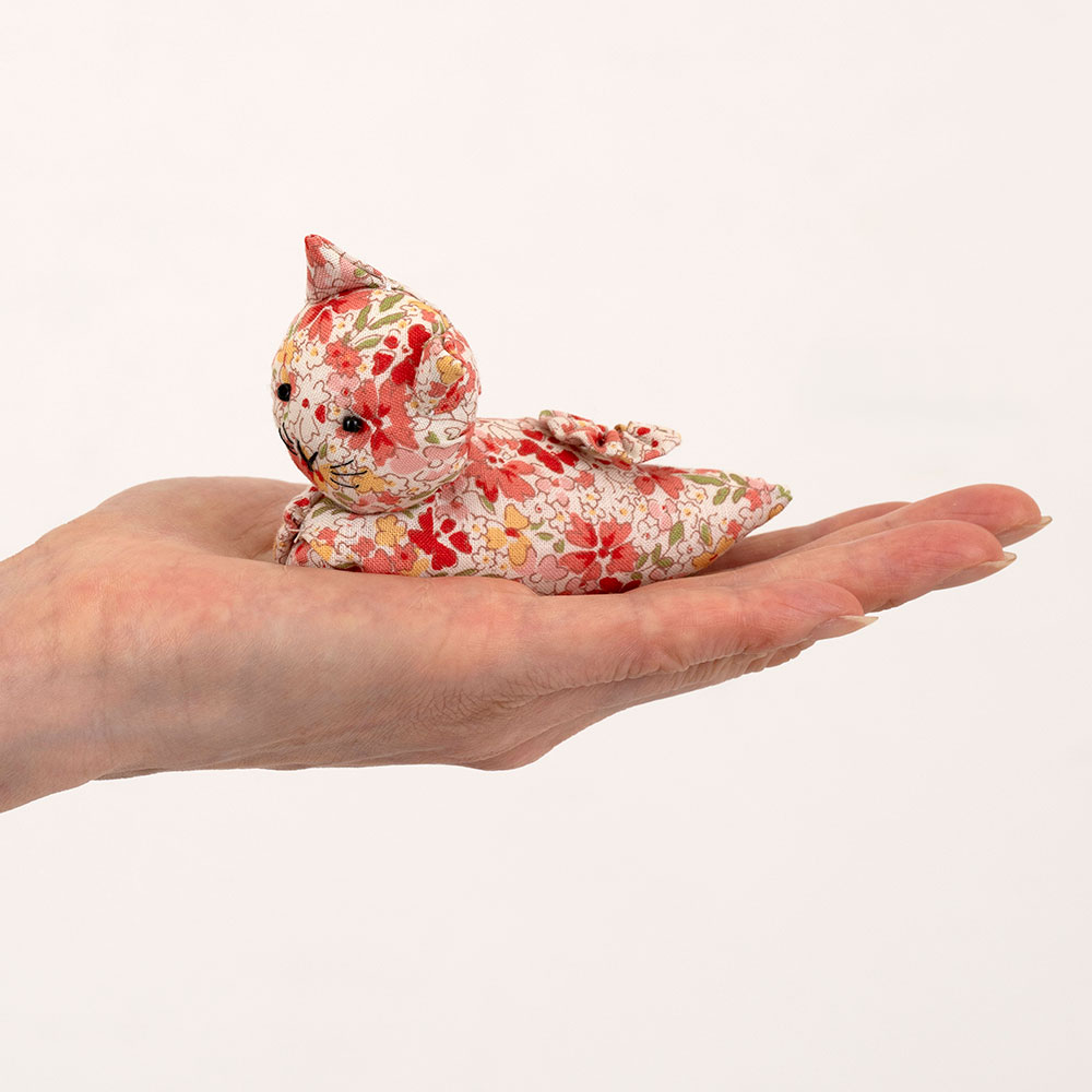 【キット作り方つき】折ったり重ねたり絞ったり。ユニークな手法で手軽に作れる、手のひらサイズのネコのマスコット3体です。ペレットを入れて程よい重さに仕上げます。