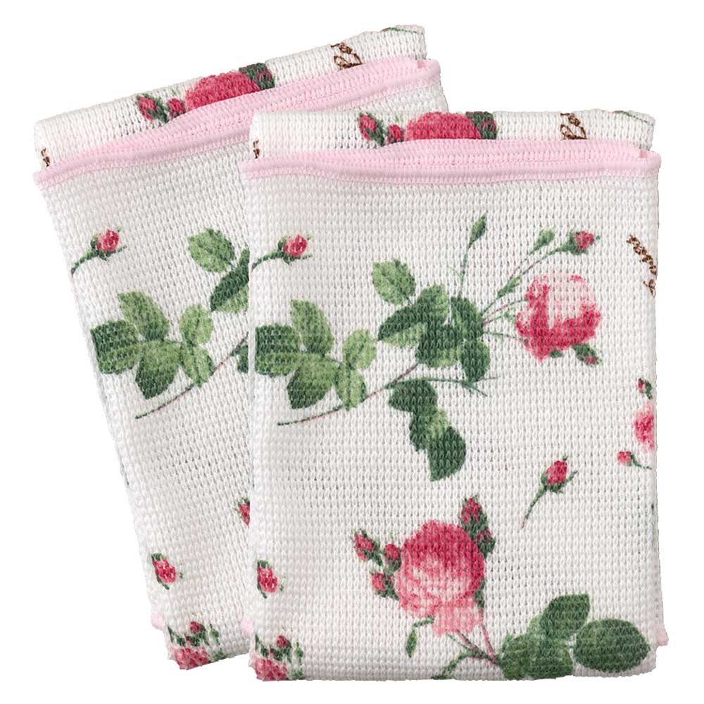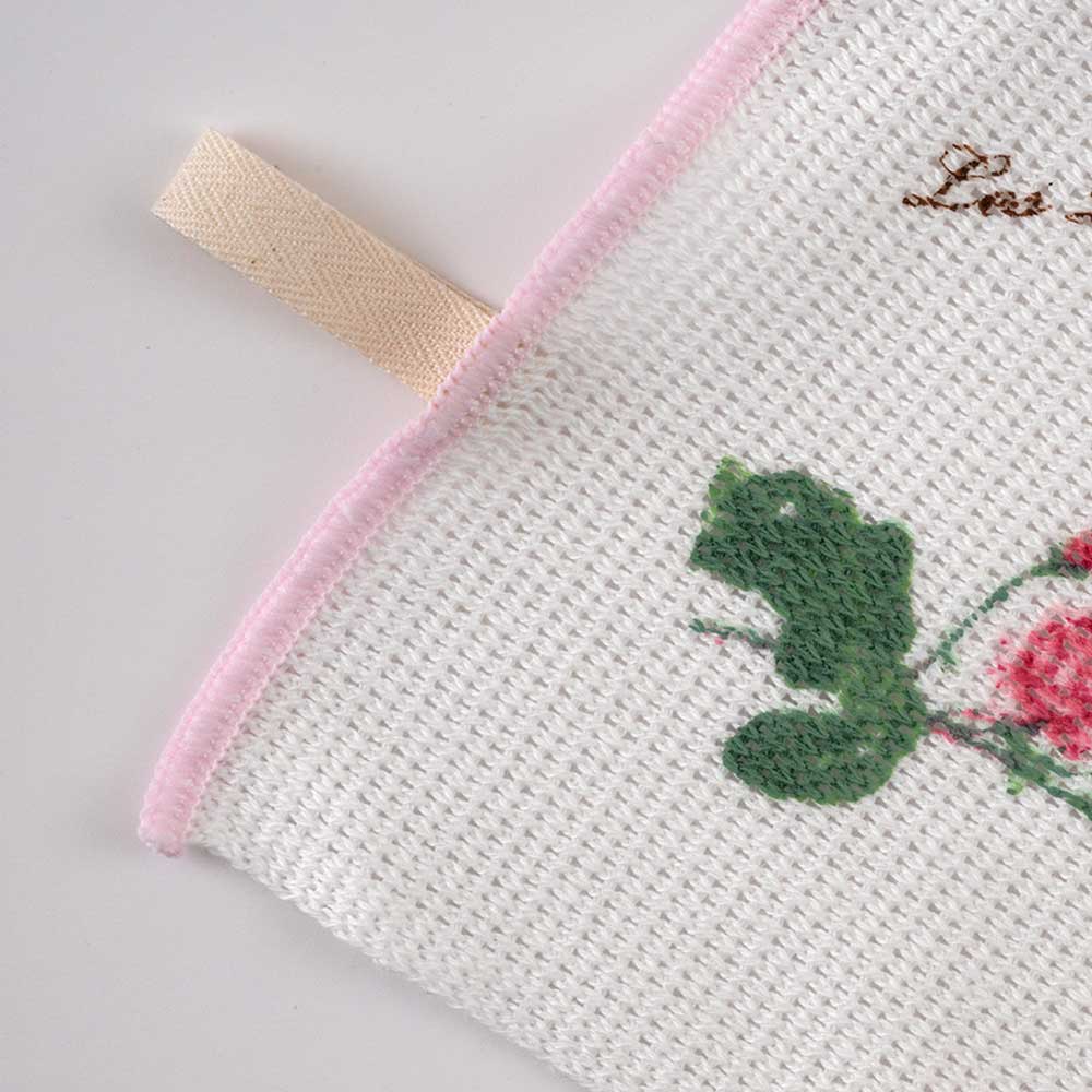 【完成品】「バラ図譜」の作品をプリントしたクロスを2枚セットでお届け。欧米への輸出用として戦後から作られ、今も愛されるイノダ織のニットふきんです。吸水性が高く速乾性にも優れています