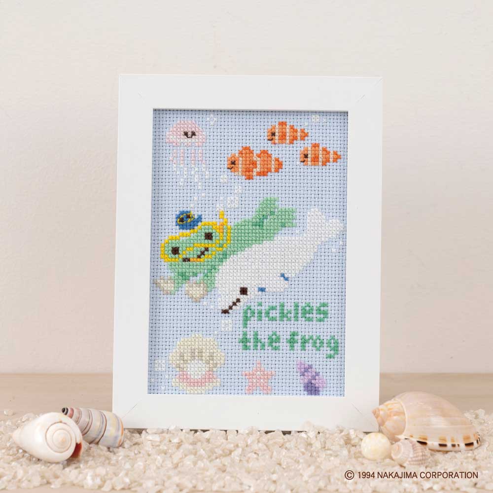 大きな瞳が愛らしい かえるのピクルスから、「海のおともだち」のクロスステッチキットが登場です。