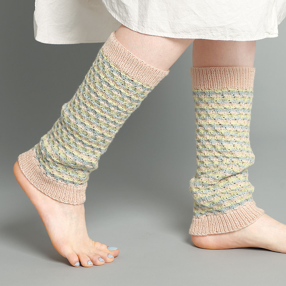キュートなパステルカラーは、3色ボーダーにしてレッグウォーマーに。温活対策はもちろん、厚底シューズと合わせるのもおすすめ。