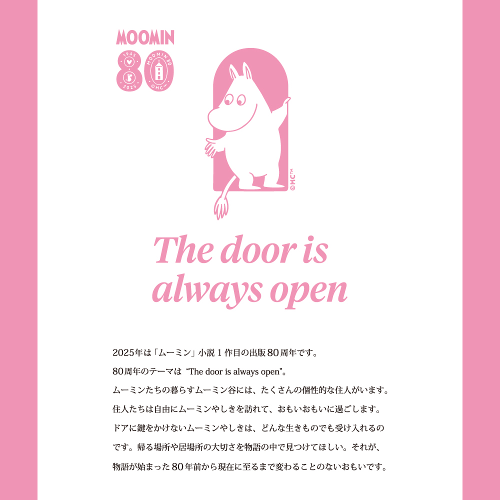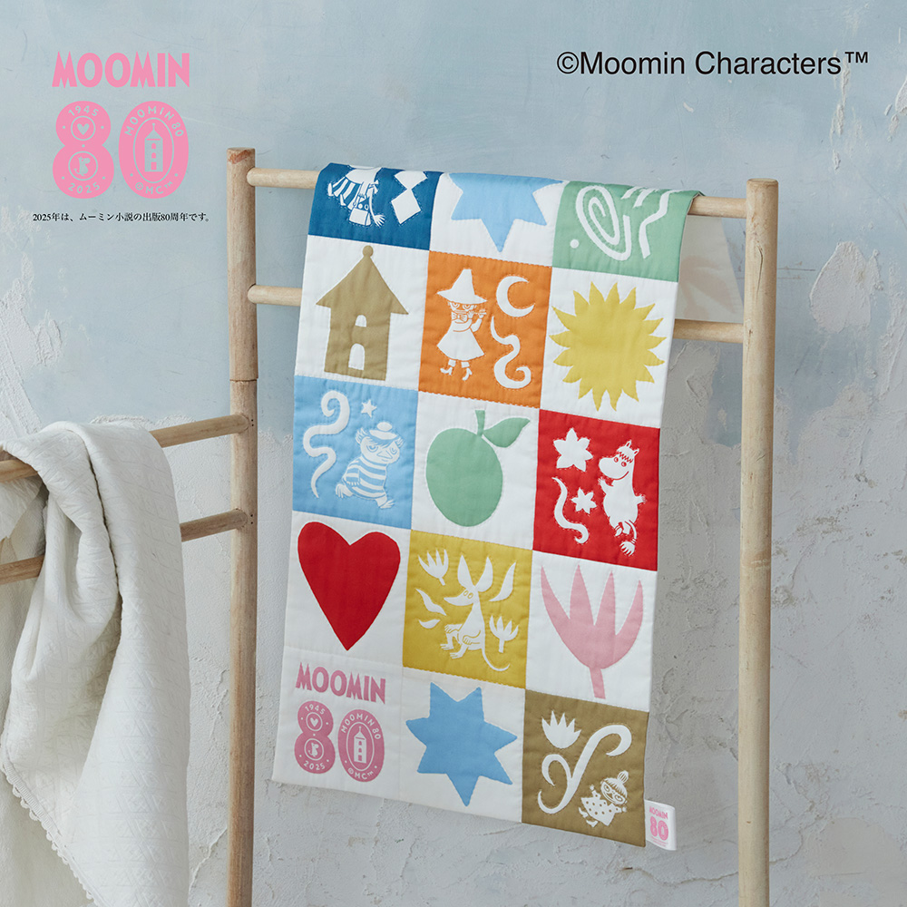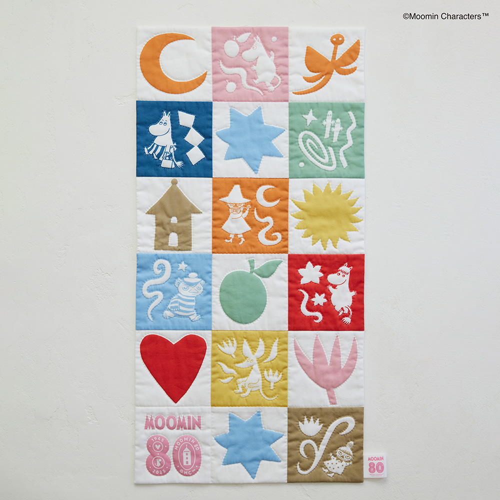 ムーミンは2025年で「ムーミン」小説1作目の出版80周年を迎えます。記念すべき年をお祝いするデザインを使用したキルティングクロスキットです。