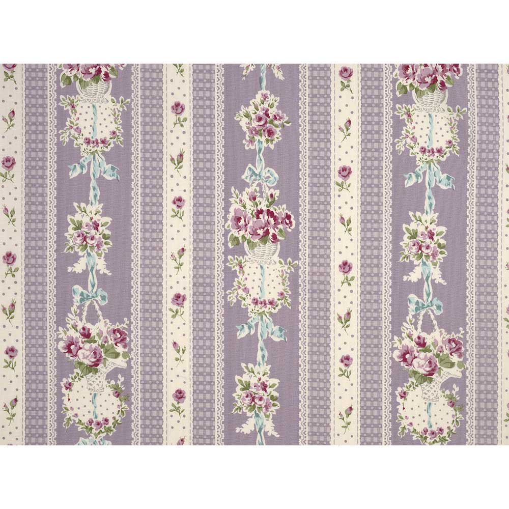 宮崎順子さんデザイン。パープルトーンで描いた、エレガントなフラワーボーダー柄プリントです。タペストリーの周りやインテリアなどにも。パープル部分のボーダーは約9.5cm幅。