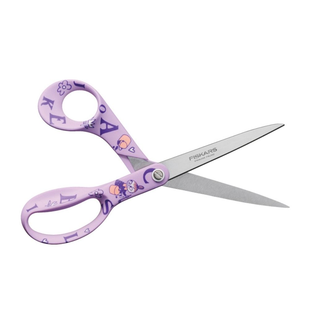 フィンランドを代表するブランド「フィスカース」と、人気のテーブルウェアブランド「アラビア」のムーミンデザインが融合した、Made in フィンランドのハサミ。リトルミイとアルファベットモチーフがデザインされた、淡いパープルカラーです。