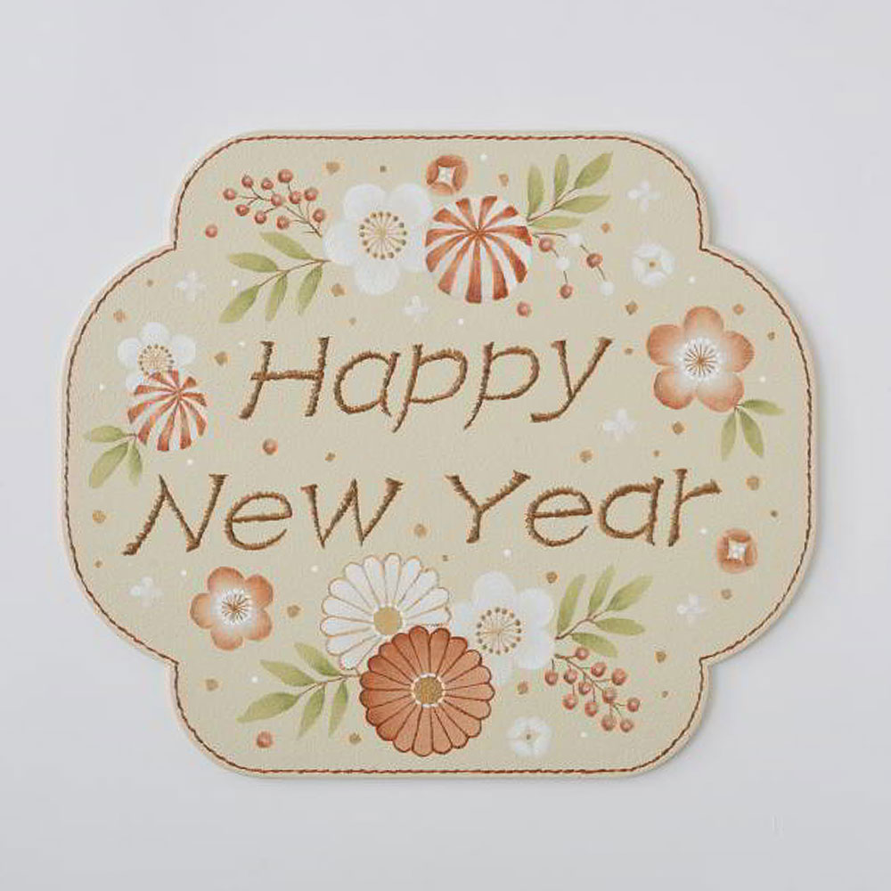渋めの紅白を基調にして、梅、松、南天など縁起のよいモチーフを描きます。
