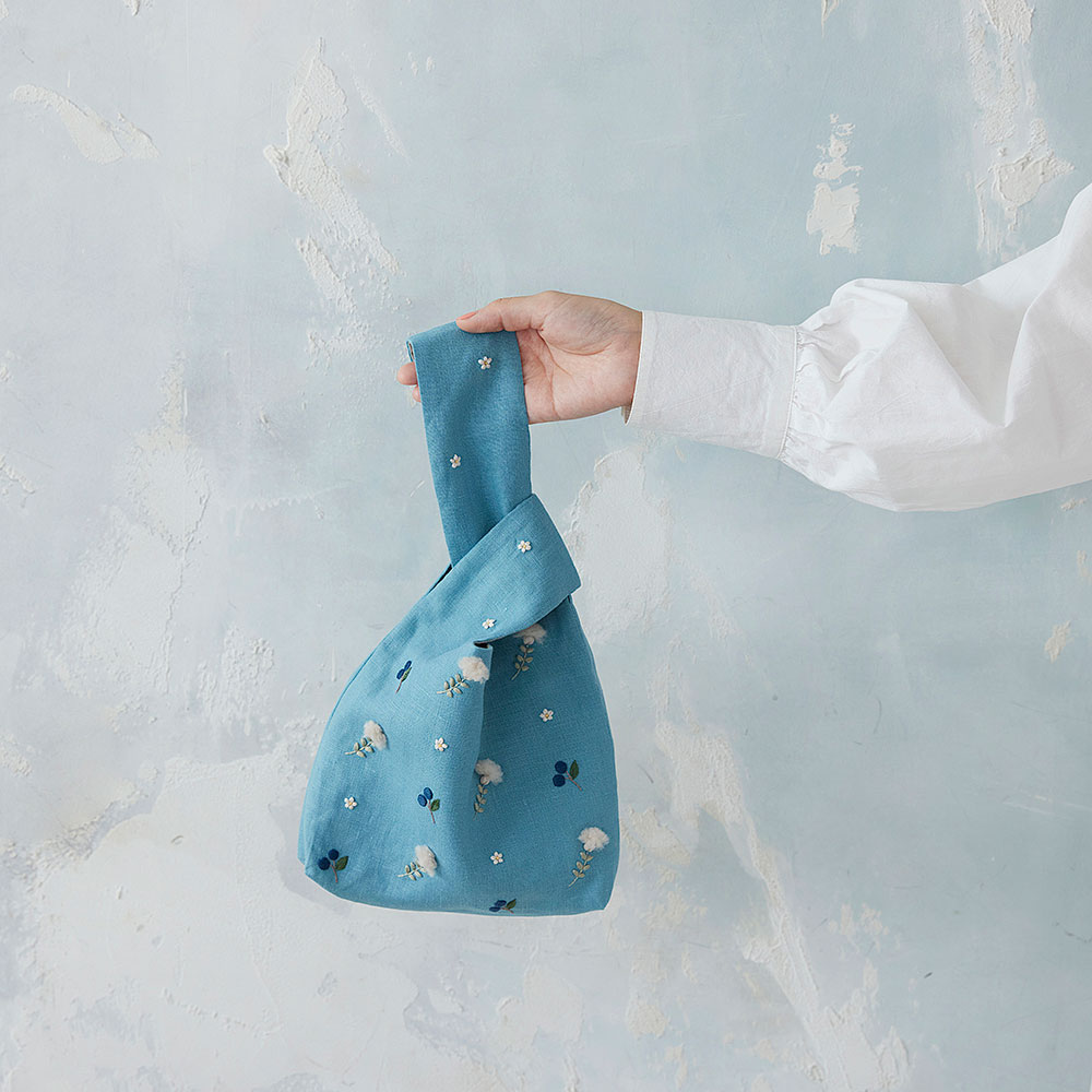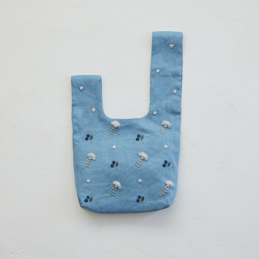 スタンプワーク(立体刺繍)の一つタッセルステッチで描くふわふわとしたお花が魅力的なバッグは、