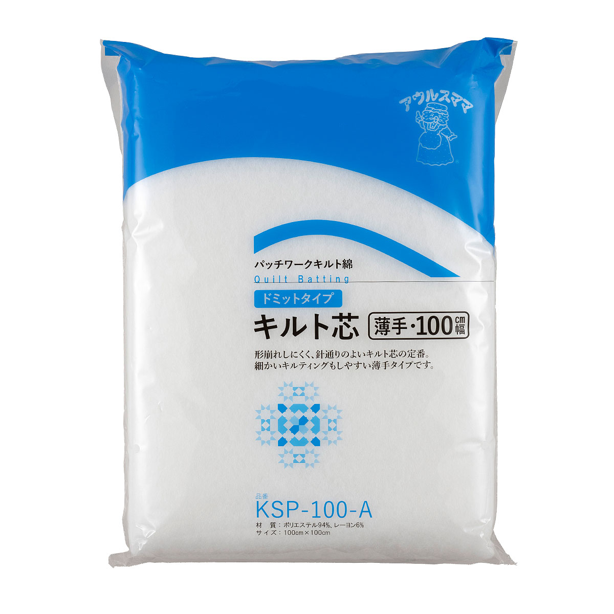 ドミットタイプのキルト芯。薄い不織布が裏に貼ってあるので、フープを使ったキルティングでも伸びません。