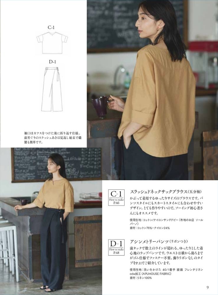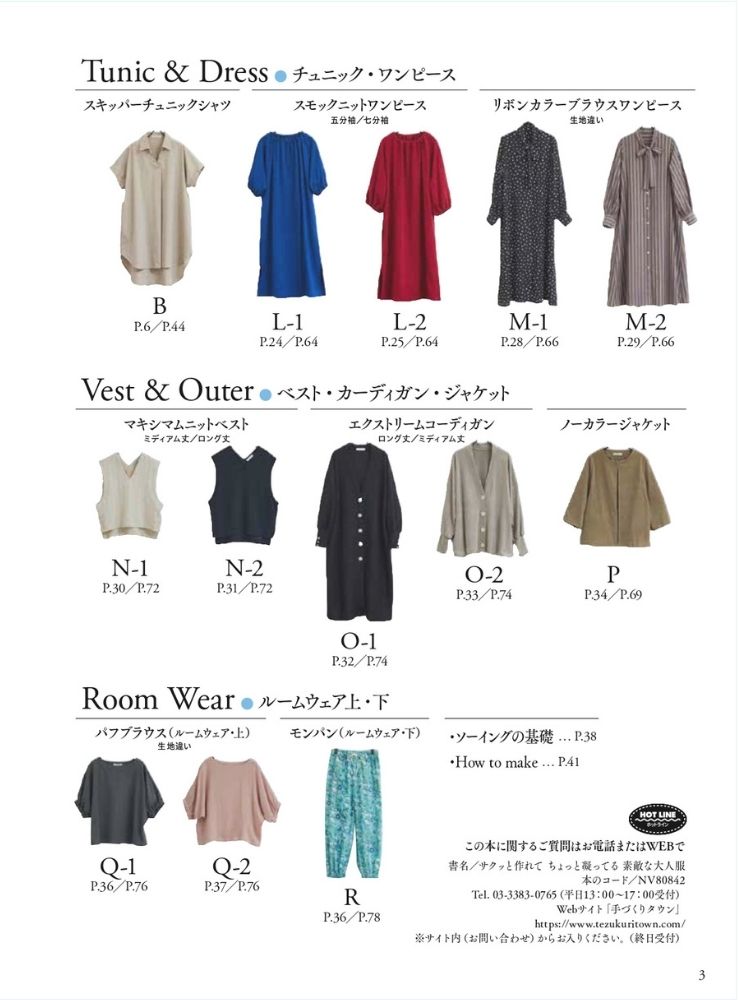 アパレルパターン専門店aviver(アヴィヴェ)のお洋服が作れる作品集。ソーイング初心者を含むミセス層を対象に、簡単に作れて、日常で活躍する大人服を紹介します。見た目はシンプルで洗練されたシルエット、デザインはちょっとした切り替え位置のラインにもこだわり抜いた、パタンナーならではの技が詰まっています。ブラウス、ワンピース、チュニック、パンツ、スカート、カーデなど、丈違いや生地違いのアレンジを含めて計29点を掲載。付録:S・M・L・2L・3L・4L(6サイズ)の実物大型紙つき