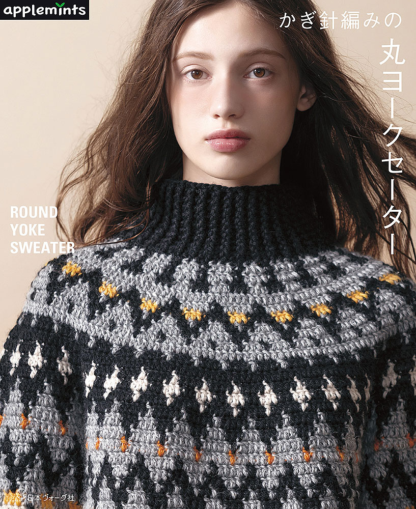 かぎ針編みで表現した丸ヨークセーターの作品集。棒針編みと比べて1段あたりの高さが1.5~2倍になるので、大物を早く気軽に編むことができます。伝統柄をかぎ針で表現した王道デザインのものからグラニースクエアを組み込んだかぎ針編みならではのものまで幅広く展開。