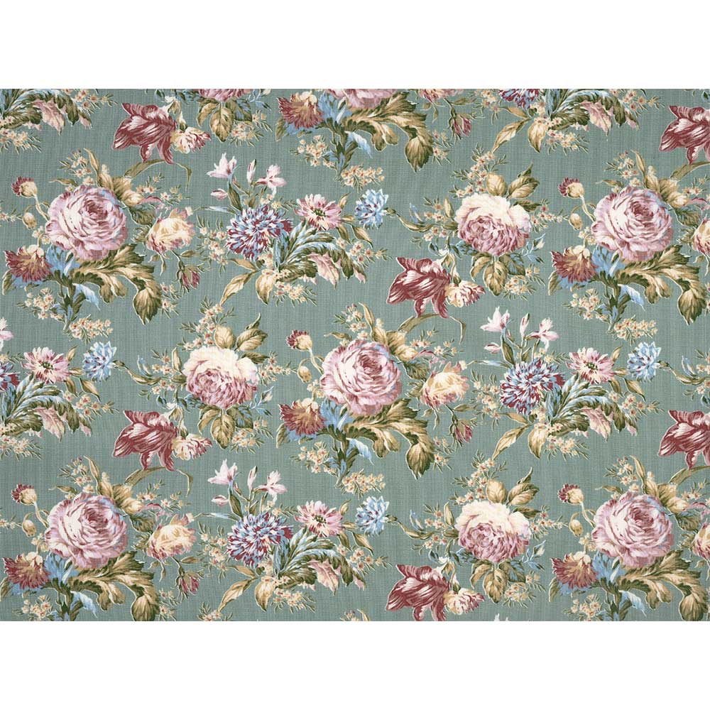 オパールグリーンの地に、華やかなフラワーモチーフを描いた、大人っぽいプリント。ワンピースやインテリアなどにも。