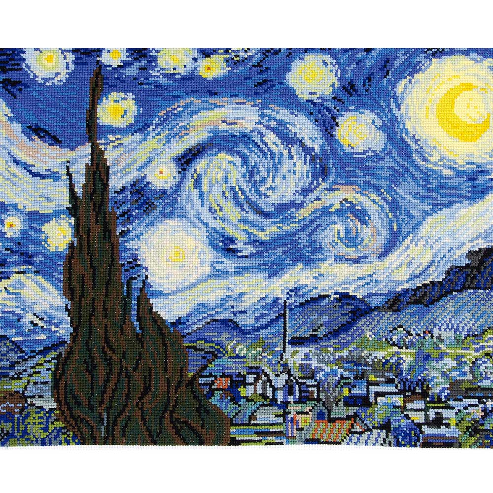 【キット作り方つき】フランスのDMCが世界の名画からセレクトしてキット化した、マスターズコレクション。ゴッホが南仏滞在中に描いた名画「星月夜」を、クロスステッチで再現しました。渦巻く星空や輝く月、魅惑的な夜の光景に引き込まれます。上級の方向き。