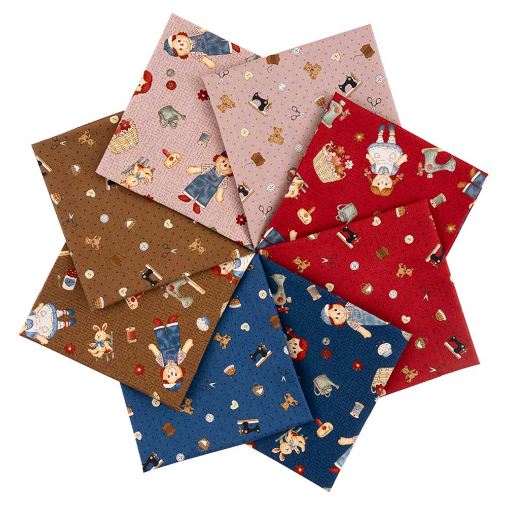 ジョンとエミリーをモチーフにした中柄と、ソーイングアイテムなどの小柄をセレクト。使い合わせやすい、カントリーテイストのカットクロスセットです。ピースワークはもちろん、小物作りにも。