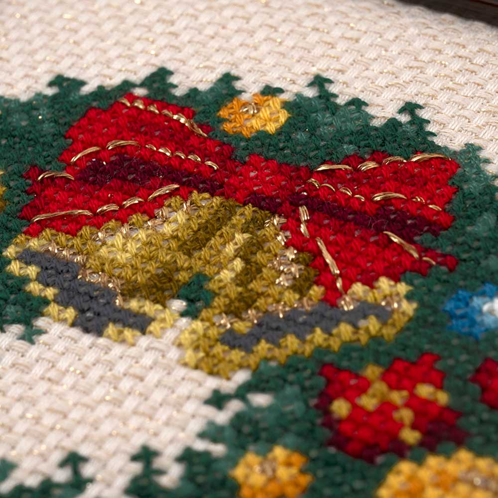 【キット作り方つき】ラメ糸が上品に輝くクロスに、カラフルなクリスマスリースをクロスステッチ。フレームつきなので作ってすぐに飾れます。初?中級の方向き。