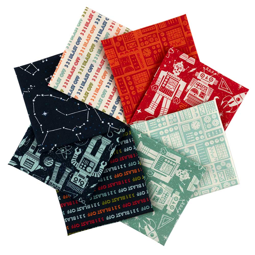 ロボットやロケット、英字などをレトロな色合いで描いた、ファンタジックで楽しいコレクション。キッズ用のアイテムにもお勧めです。