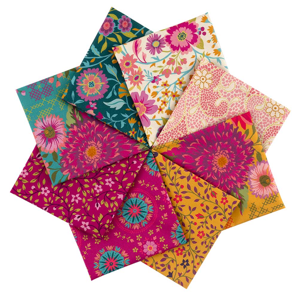 個性的な花柄を、鮮やかな色合いで描いたコレクションです。ピースワークの挿し色や、エキゾチックな小物作りなどにも。