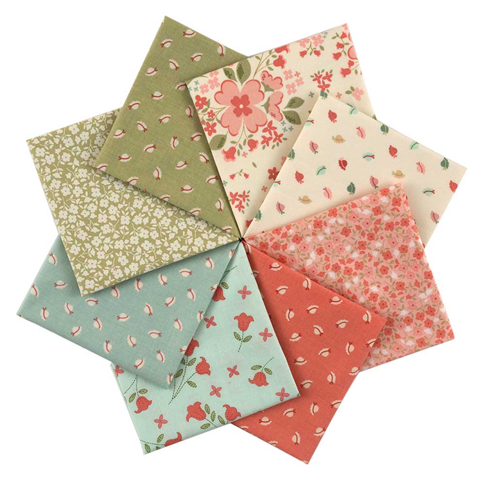 【USA】ミニボンネット柄とヴィンテージ風のフラワーモチーフを、優しい色合いでプリントしたカットクロスセットです。ピース用や小物作りに活躍します。