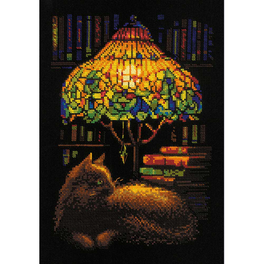 【キット作り方つき】 ブラックアイーダに、ステンドグラスランプの灯かりが美しく映える、ロマンティックなクロスステッチ作品です。上級の方向け。リトアニア・RIOLIS社製。