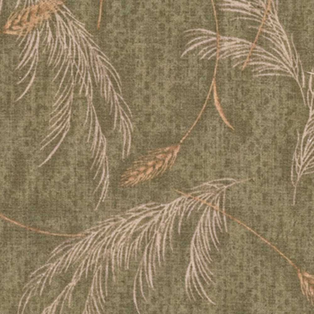 センテナリーコレクション。ニュアンスのあるグリーン地に、麦の穂を流れるように描いたデザイン。土台布やピースワークなどに。