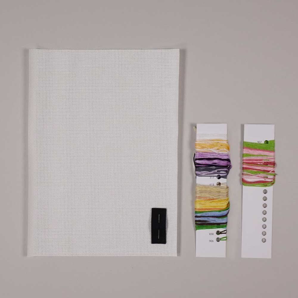 クロスステッチは方眼の布にクロスに糸を通して絵を描く刺しゅうです。