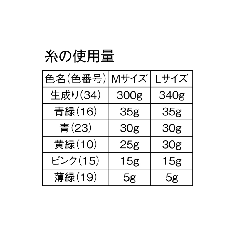 材料:ておりや クーコード 糸の色名・色番号・使用量は図中の票を参照してください。