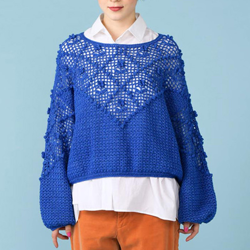〈レシピ〉青の花モチーフのプルオーバー