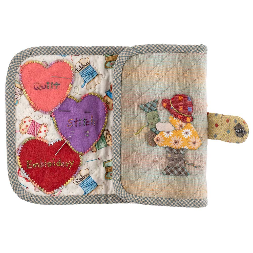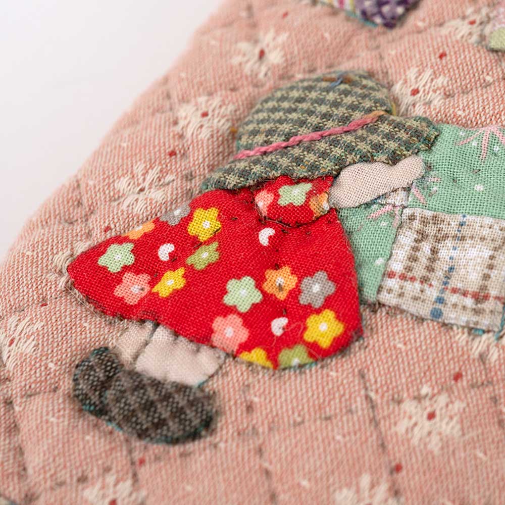【キット作り方つき】キルターの使いやすさを考えてデザインされた、小さめの便利なソーイングケース。洗濯中のスーをアップリケした面の後ろ側は、アップリケなしの1枚布です