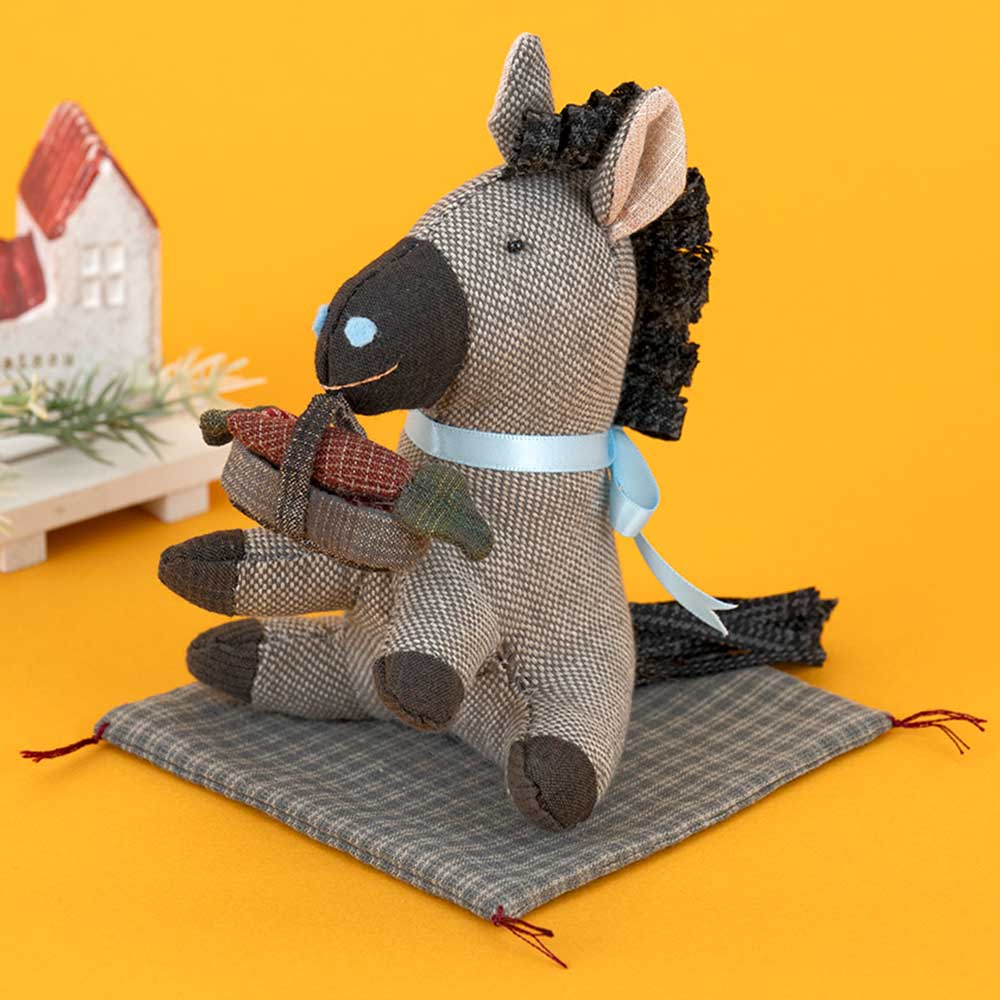 【キット作り方つき】さりげない干支飾りにもぴったり。ツイード調の布でしっかりとおしゃれに仕上がる、小さな馬の縫いぐるみです。