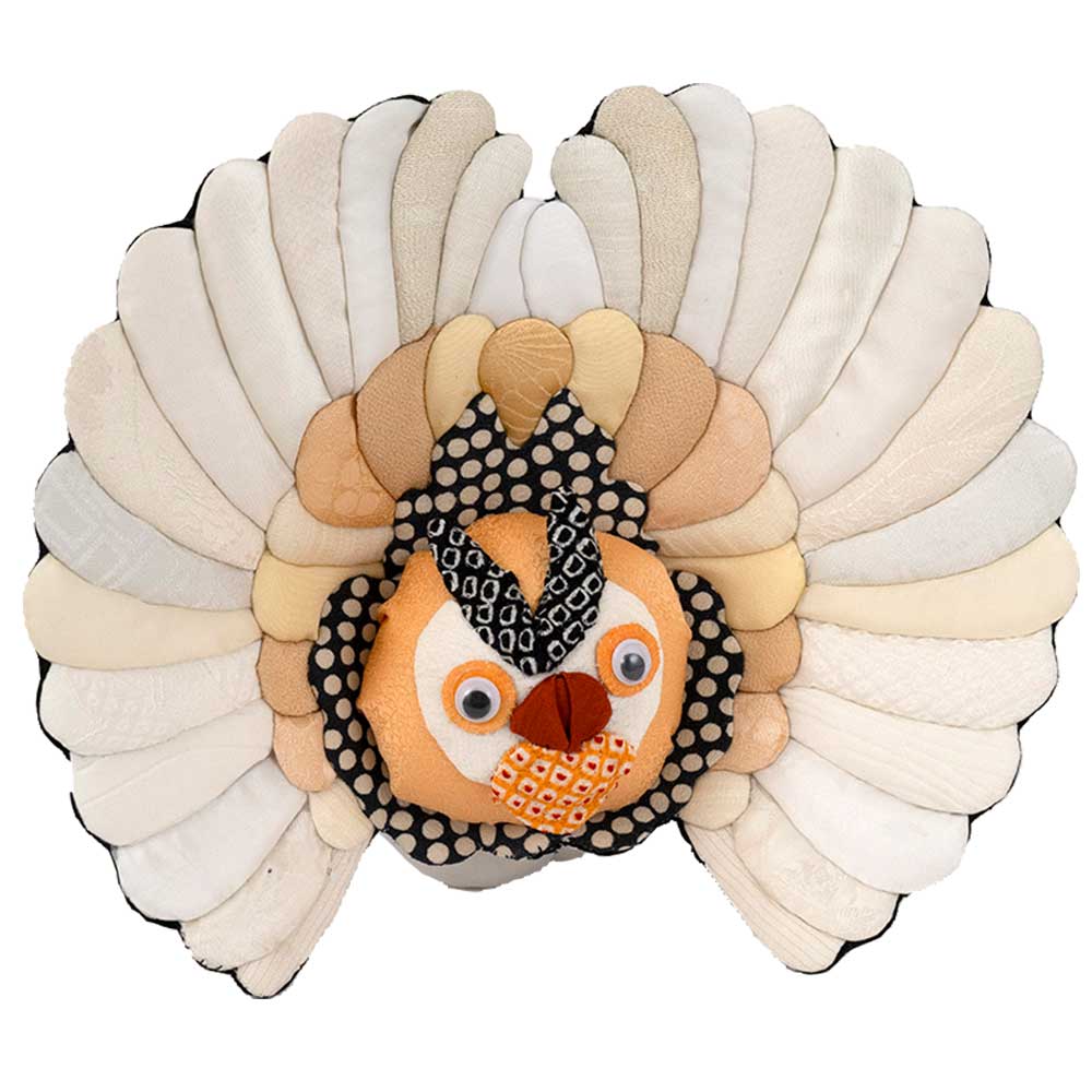 【作り方つき】【古裂】首が回る楽しい作りのフクロウ2 種です。置いたり壁に掛けたりして飾れます。“ 福来朗”“ 不苦労” で縁起よく。