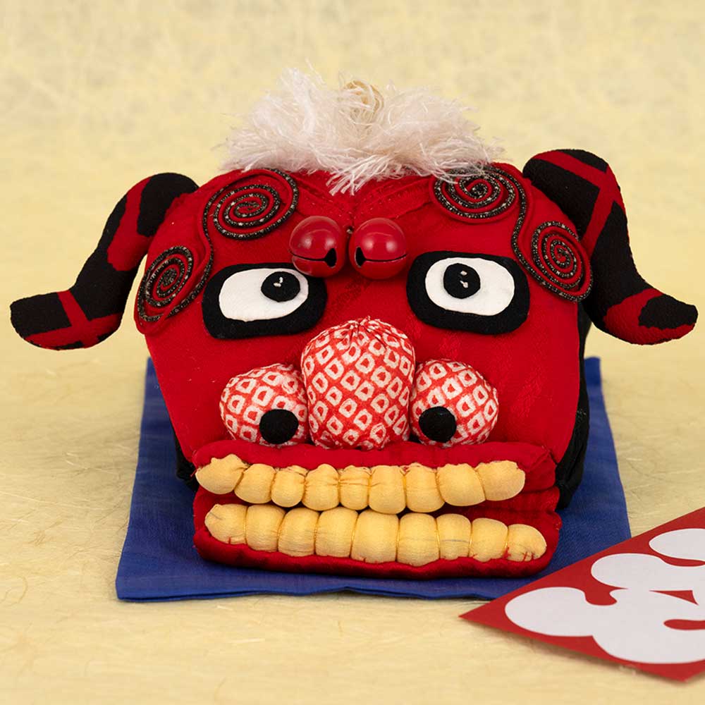 【作り方つき】かぎ針落下防止のストッパーや小物が入るファスナー付きポケットがついている縫製済みのかぎ針ケース。お好きな【キット作り方つき】厄除けや無病息災を祈る伝統芸能・獅子舞の顔を置き飾りに。手を入れて口を動かせる作りです。