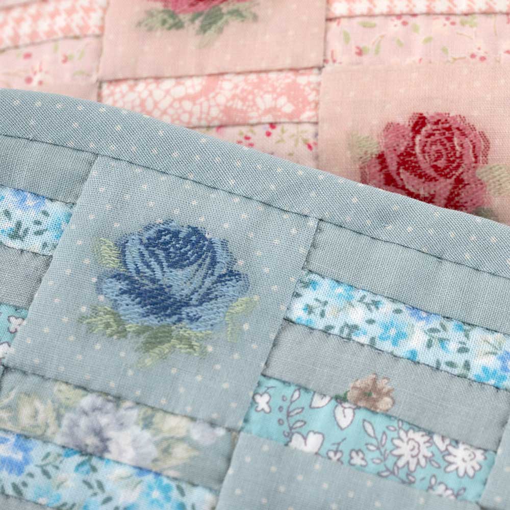 【作り方つき】上質感のある、可愛いバラ模様の刺しゅう布のピースワークで仕立てるペンケースです。2色をご用意しました。後ろも同じデザイン。
