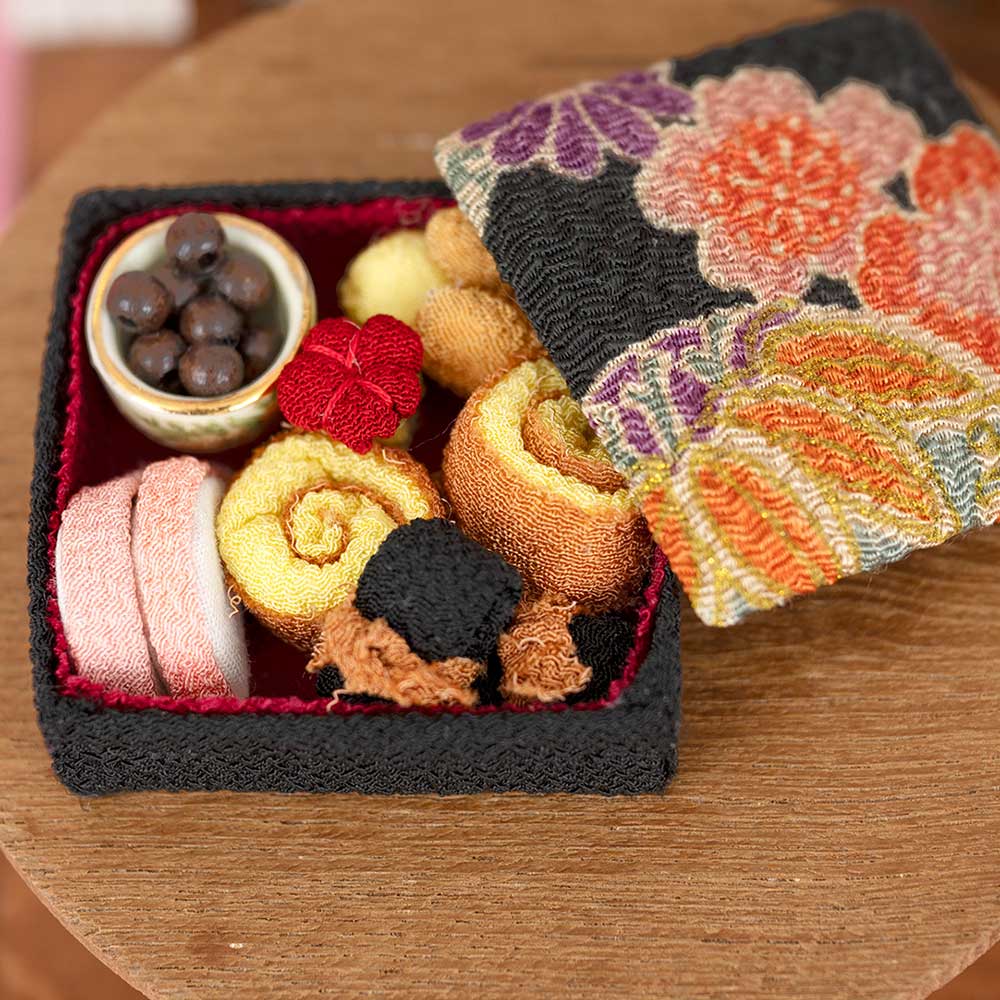 布、障子紙、接着芯(帯、うさぎの耳)、両面接着芯(南天用)、キルト芯、つめ綿、楊枝、リボン、ボタン、刺しゅう糸、厚紙、ワイヤー、ウッドビーズ、木材、障子紙、ミニチュア湯呑・花瓶、ペップ