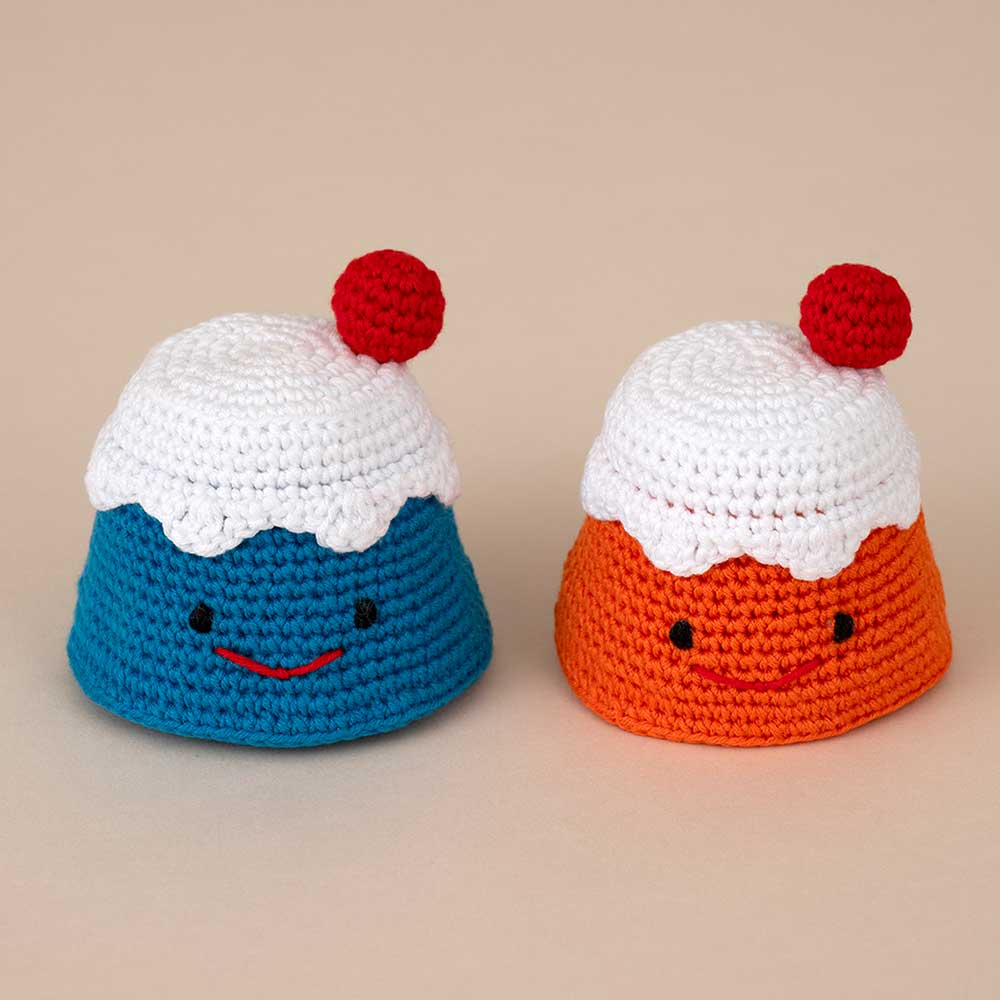 【キット作り方つき】富士山キャラクターの可愛い編みぐるみです。おめでたいご来光つきで仕上げます。つめ綿を柔らかく入れてピンクッションにしても。かぎ針編み中級以上の方向き