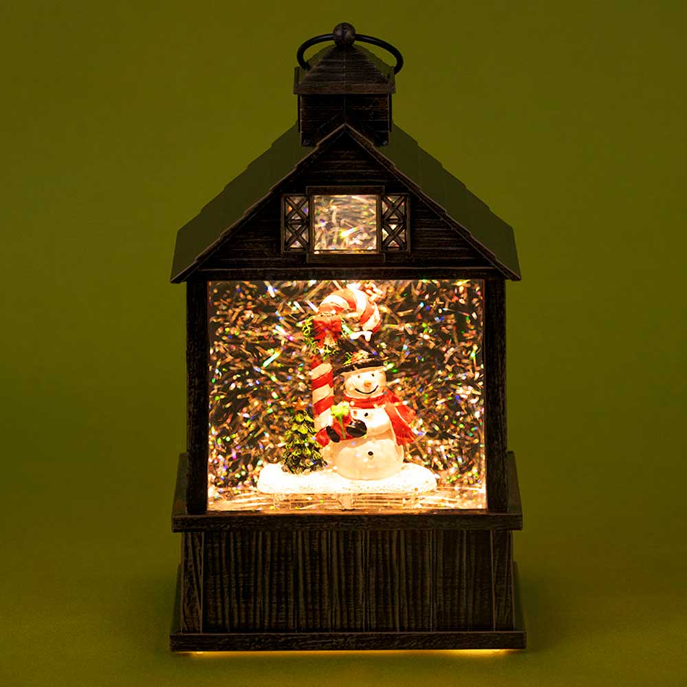 【限定40】【完成品】 スイッチを入れるとたっぷりのラメが舞ってきらきら光る、やや小ぶりのハウス型スノードームです。 音楽あり・なしが選べて音楽は繰り返し流れます。