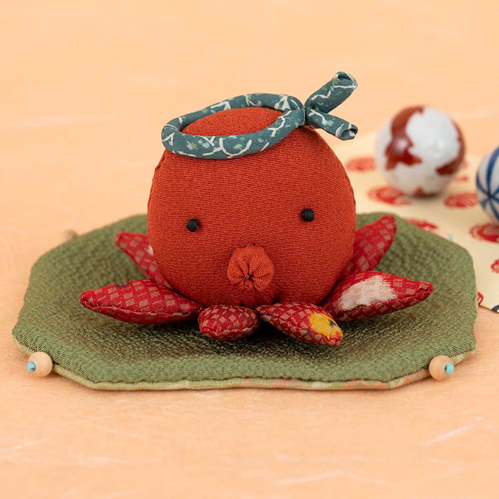 【キット作り方つき】【古裂】“ 多幸”から開運・必勝のお守りに、また英語のオクトパスから資格試験などのお守りとしても人気のタコの飾りです。置いておくだけでも心和みます。