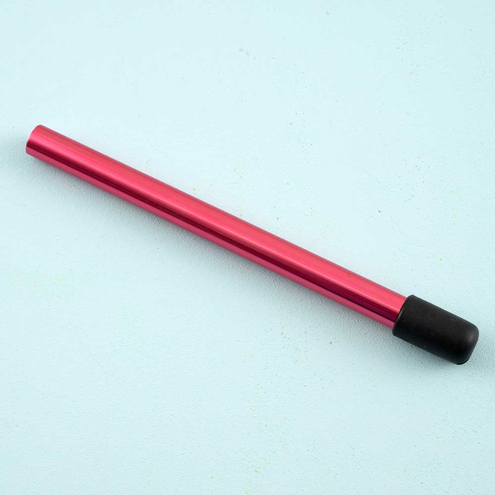ニットプロ社のニードルプロテクターです。軽い金属製のカラフルな筒状の本体の片側に、シリコン製のキャップが付いており、編み途中の輪針の先などを2本まとめて収めて編み針の先端を保護することができます。リクエストにお応えして、以前発売の3本セットをピンクの1本売りにしました。