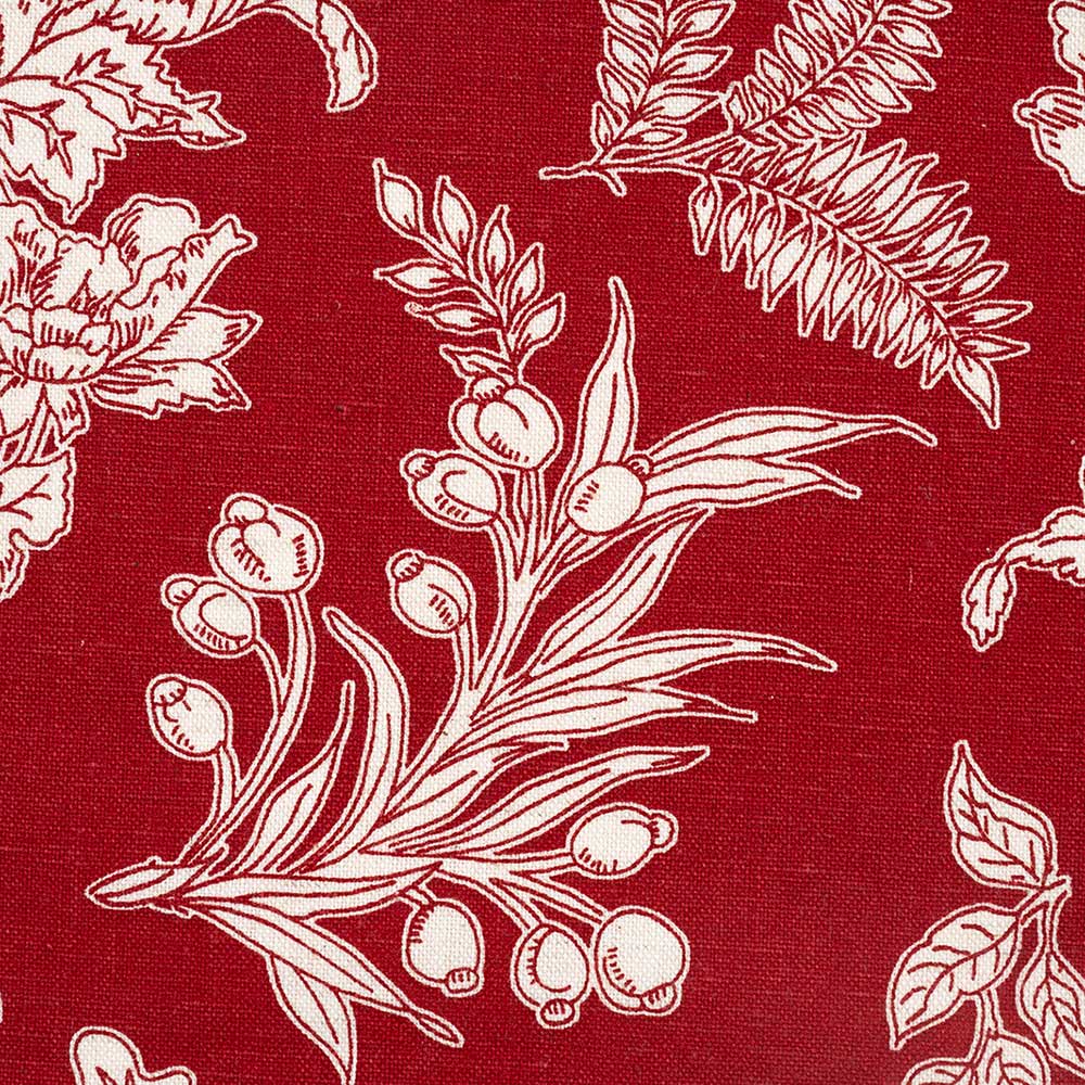 【完成品】麻混生地で使いやすいと人気のシリーズより、ノエルのシーズンにぴったりなノーブルなデザインのプリント生地を使ったエプロン。ひもは後ろでゆったりと結んでも、前に回してもOK。オーソドックスな使いやすい人気の形です。足さばきの良い短めの丈です。