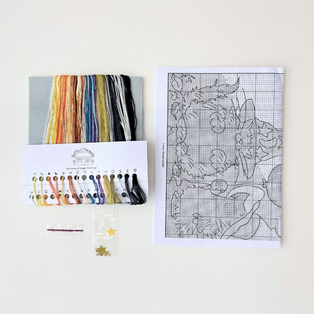 生き生きとしてユーモアのあるどうぶつたちのデザインが人気のアーティスト、マーガレット・シェリーのクロスステッチキット。
