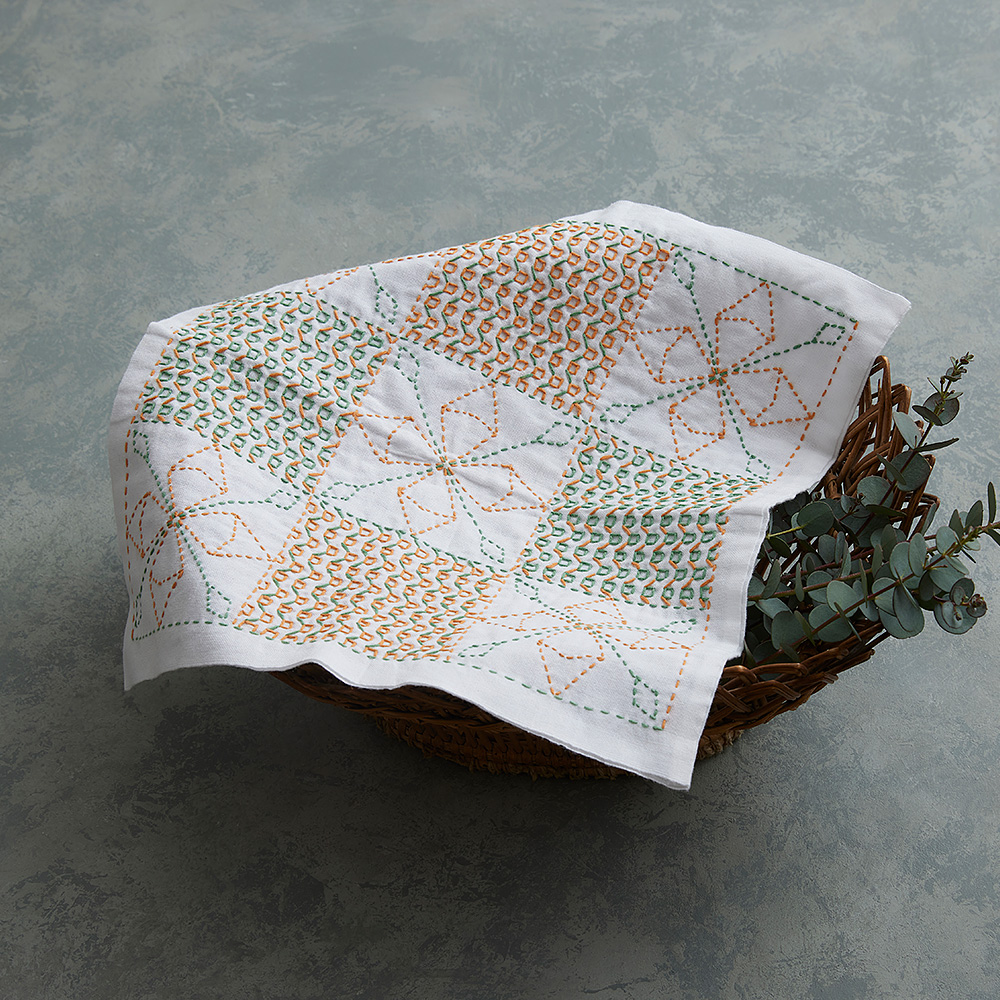 針目の大きさや糸始末など、基本をしっかり身につけて、ひと針ひと針刺し進め、浮かび上がる模様を楽しんでいただけます。