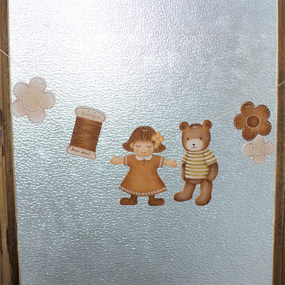 出口むつみの「女の子&クマのソーインググッズのガーランド」を描く 素材セット