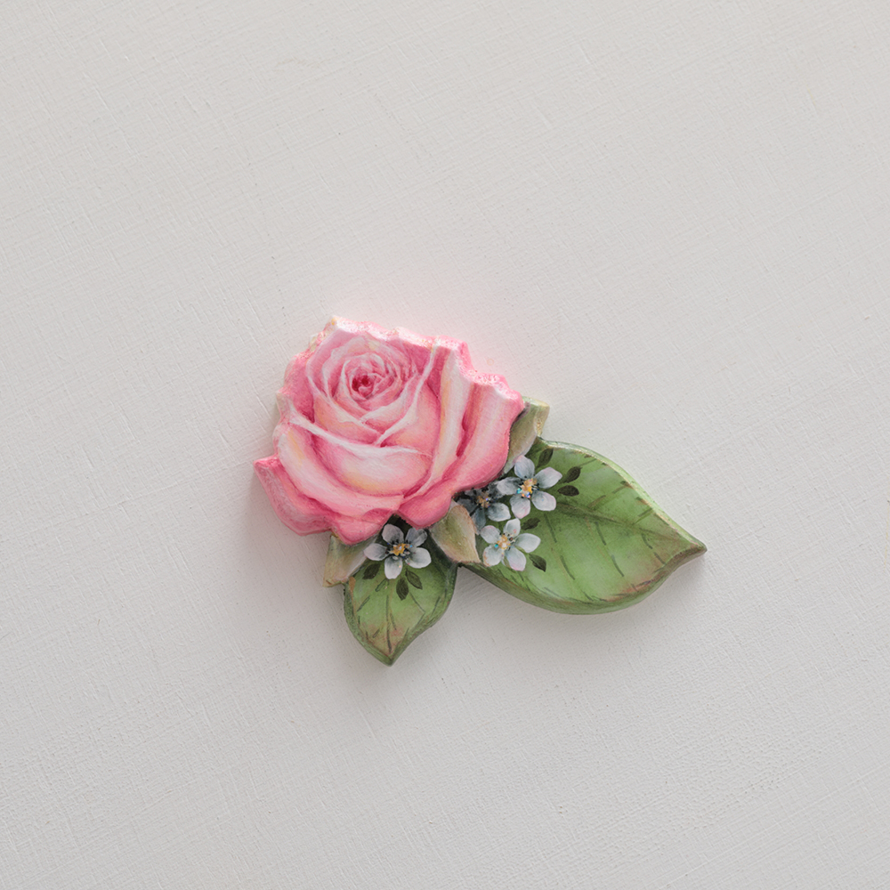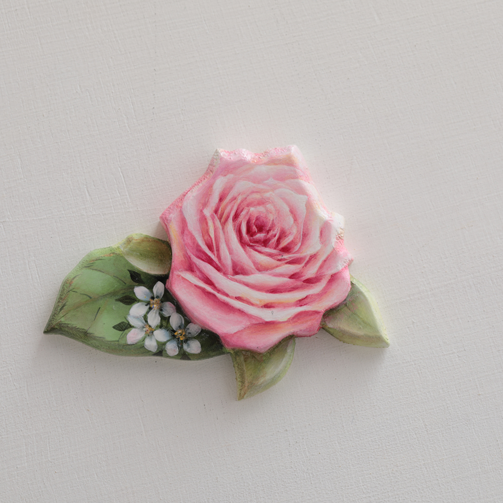 異なるサイズにカットした3枚の白木を重ね合わせ、立体感を生み出した、3層構造の白木素材に、 会田正子さんデザインの繊細なバラを描きます。各層が微妙にずれた段差を持つことで、ペイントを施した際には奥行きが際立ち、作品に豊かな表情を与えます。『ペイントクラフトデザインズvol.20』14ページ掲載 「バラのコースターとキャンドルホルダー」とセットにすると、 さらに華やかなテーブルコーディネートに!監修:会田正子