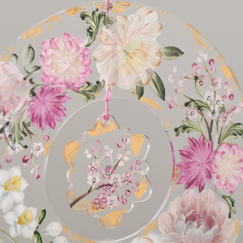 【動画内容】 アクリル素材へ描く際のポイントや、透明感のある花びらの描き方、金箔の貼り方の他、それぞれの花の描き方を順を追ってしっかりと解説しています。