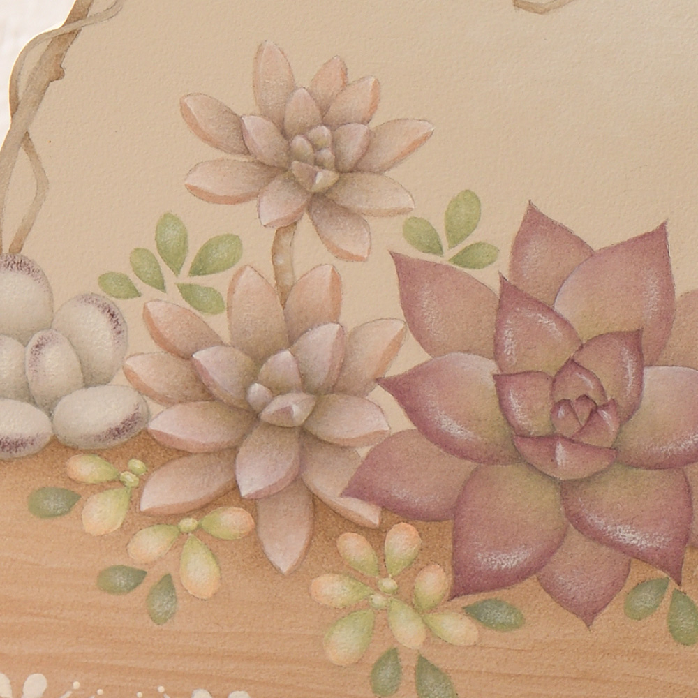 美しく紅葉した、多肉植物の寄せ植えをペイント! 多肉植物愛好家に大人気の紅葉は、秋から冬にしか見られない貴重な姿。でも、季節を問わず 楽しめるようにペイントの作品にしました。監修:白井里美