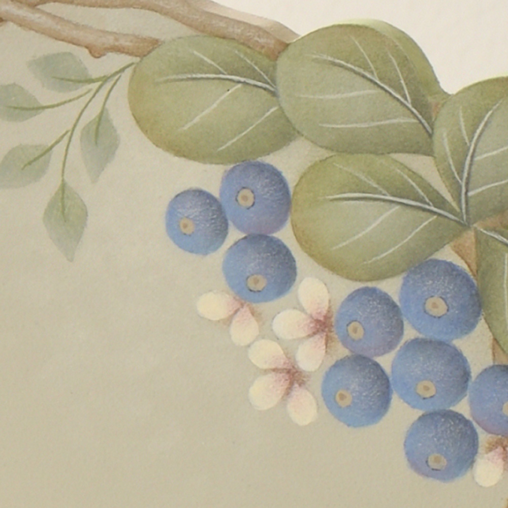 鳥モチーフも大好評の白井里美さんによる、ふんわりとした青い鳥(マウンテンブルーバード)を描く講座。合わせた丸葉車輪梅のリースも、青い鳥にぴったり♪ ブルー系のさわやかな印象の作品となっています。