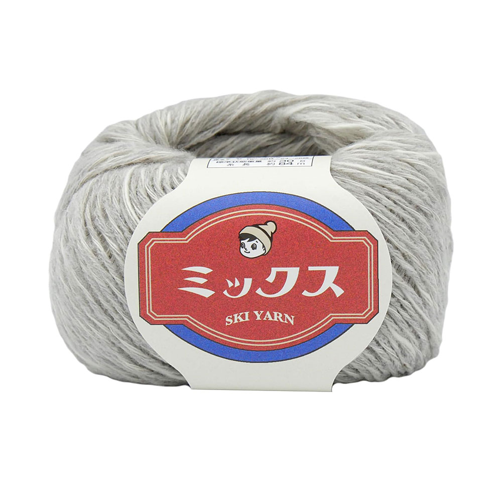 起毛糸やスラブ・ネップ等の異なる素材・形状の糸を撚り合わせた意匠糸です。編むとそれぞれの糸の特徴によって絣調にも見え、また和柄のような色目と相まって、レトロなテイストが感じられます。軽い糸なので編み方・アイテム問わずに軽やかに仕上がります。
