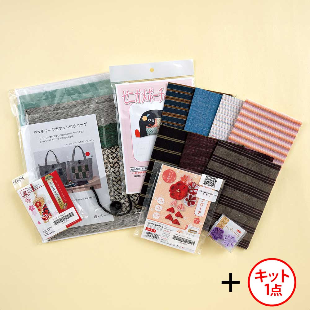 【限定20】和調のキット5点とパーツ、遠州紬・亀田縞それぞれのカットクロスのセット。税込合計16,000円相当のお得な福袋です。