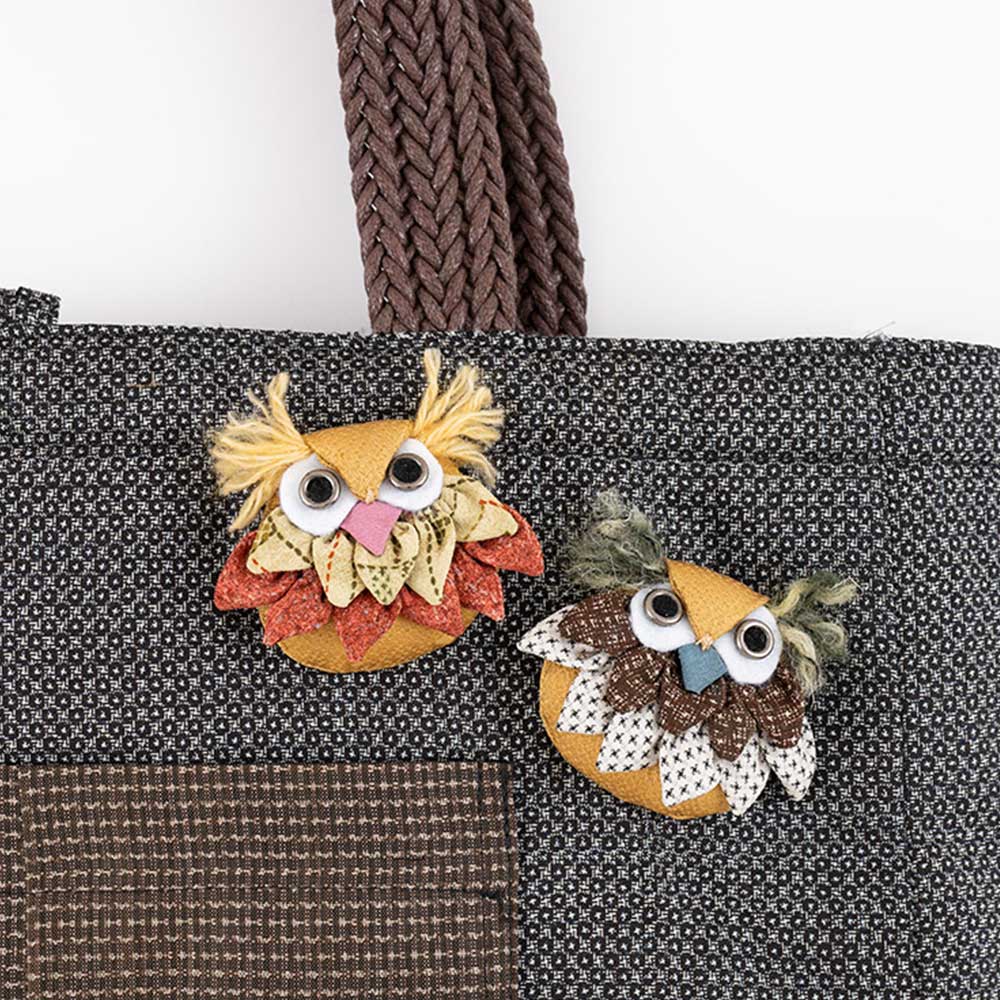 【キット作り方つき】人気のフクロウモチーフを可愛らしいブローチに。小さめで軽いので、気軽に着けて楽しめます。